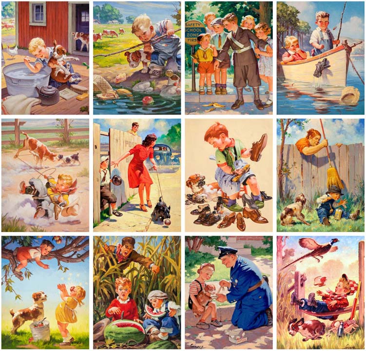 Un policier sympa discute avec un petit garçon et son chien fidèle lors d'une expo canine vintage !